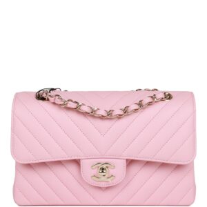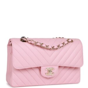 Chanel Small Chevron Classic Double Flap Pink Calfskin Light Gold Hardware