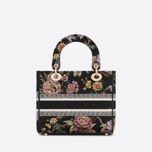MEDIUM LADY D-LITE BAG Black Multicolor Dior Jardin Botanique Embroidery