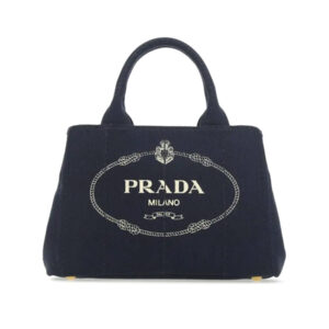 Prada Small Cotton Canvas Tote in Navy
