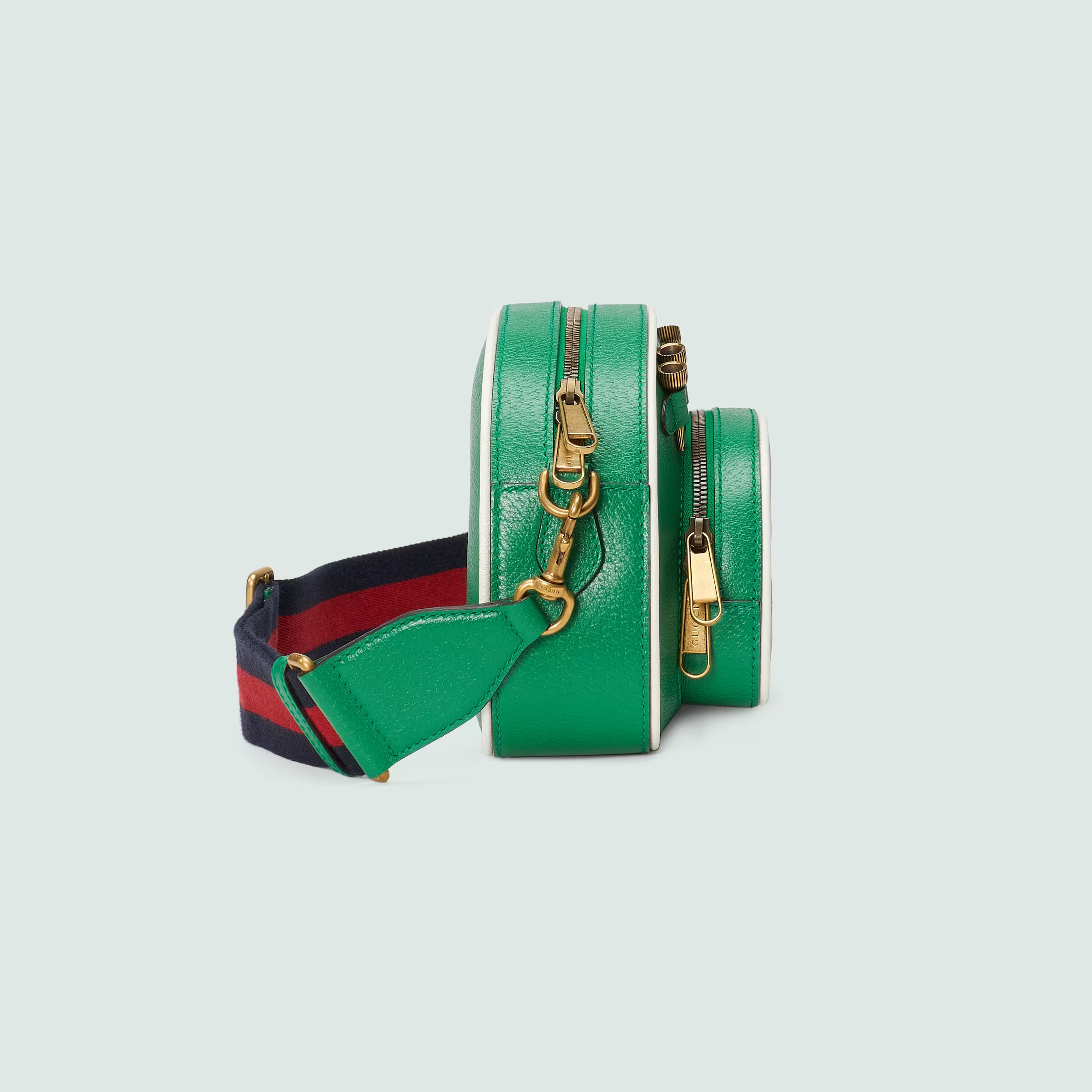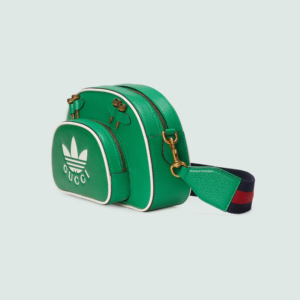 A second chapter in the adidas and Gucci collection, where the Web continues to juxtapose with the three white stripes and the GG monogram combines with the Trefoil. Inspired by the ’80s and ’90s, emblematic House’s motifs mix with those of the historic sportswear brand adidas resulting in a series of hybrid looks. This shoulder bag has a Gucci Trefoil print decorating the front pocket.