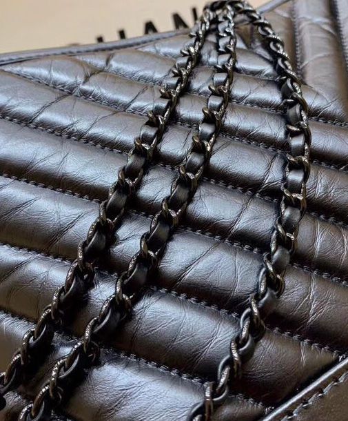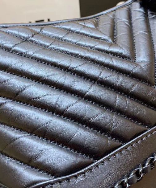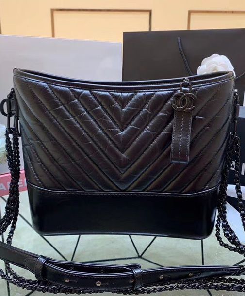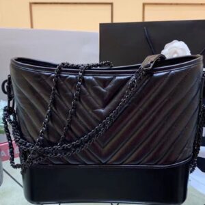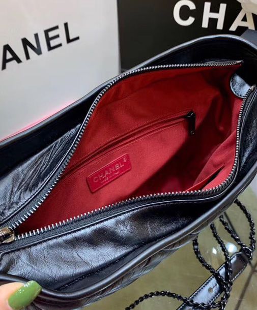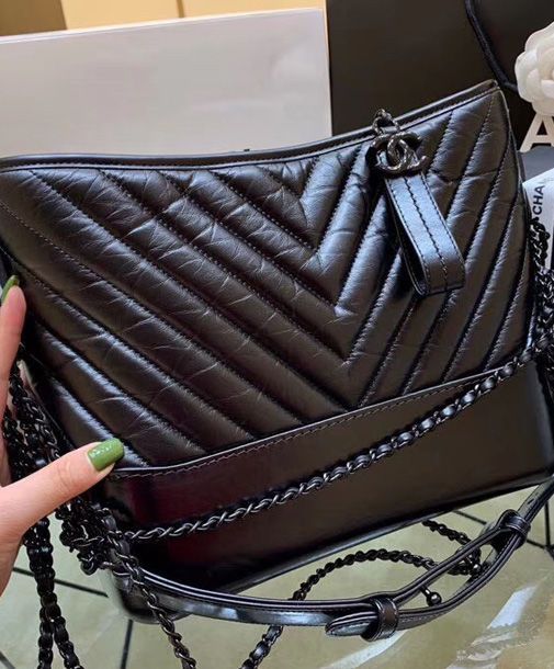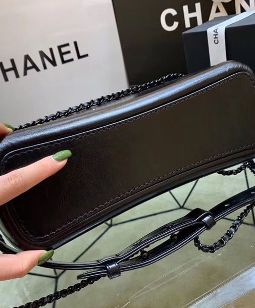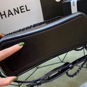 Chanel Gabrielle Black Crocodile Grained Leather Female Small Hobo Bag