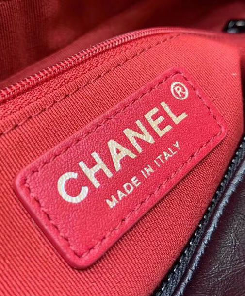 Chanel Gabrielle 28cm Navy Blue Quilted & Black Leather Brass Chain Shoulder Strap Female Zipper Hobo Bag