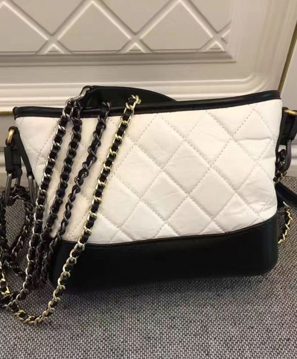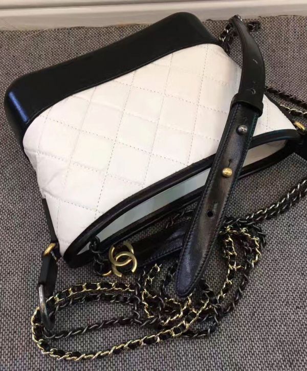 Chanel Gabrielle Two-tone Chain Shoulder Strap Diamond Lattice Women’s White & Black Lambskin Leather Hobo Bag UK quantity