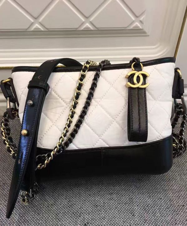 Chanel Gabrielle Two-tone Chain Shoulder Strap Diamond Lattice Women’s White & Black Lambskin Leather Hobo Bag UK