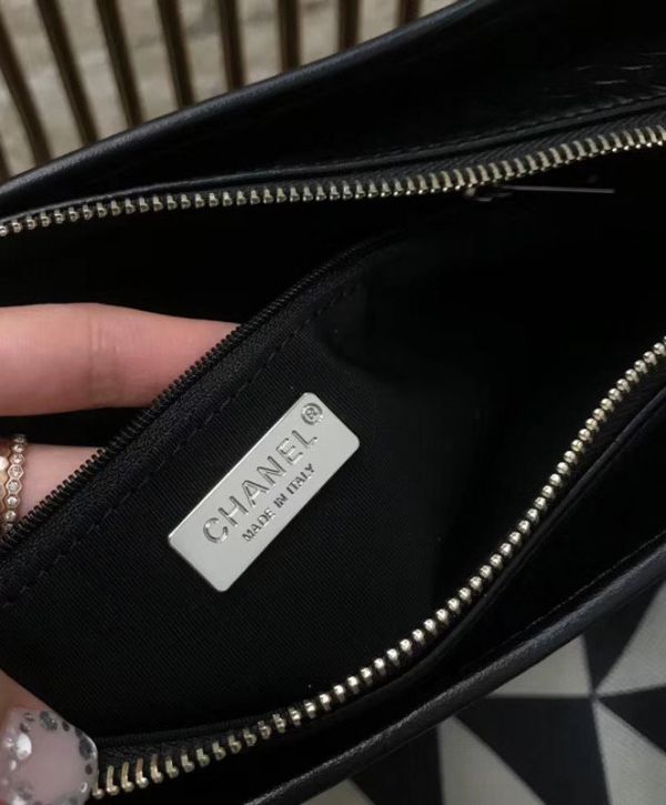 Chanel Gabrielle Popular Diamond Type Lattice Antique Metal Chain Strap Women’s White & Blak Leather Patchwork Zipper Hobo Bag