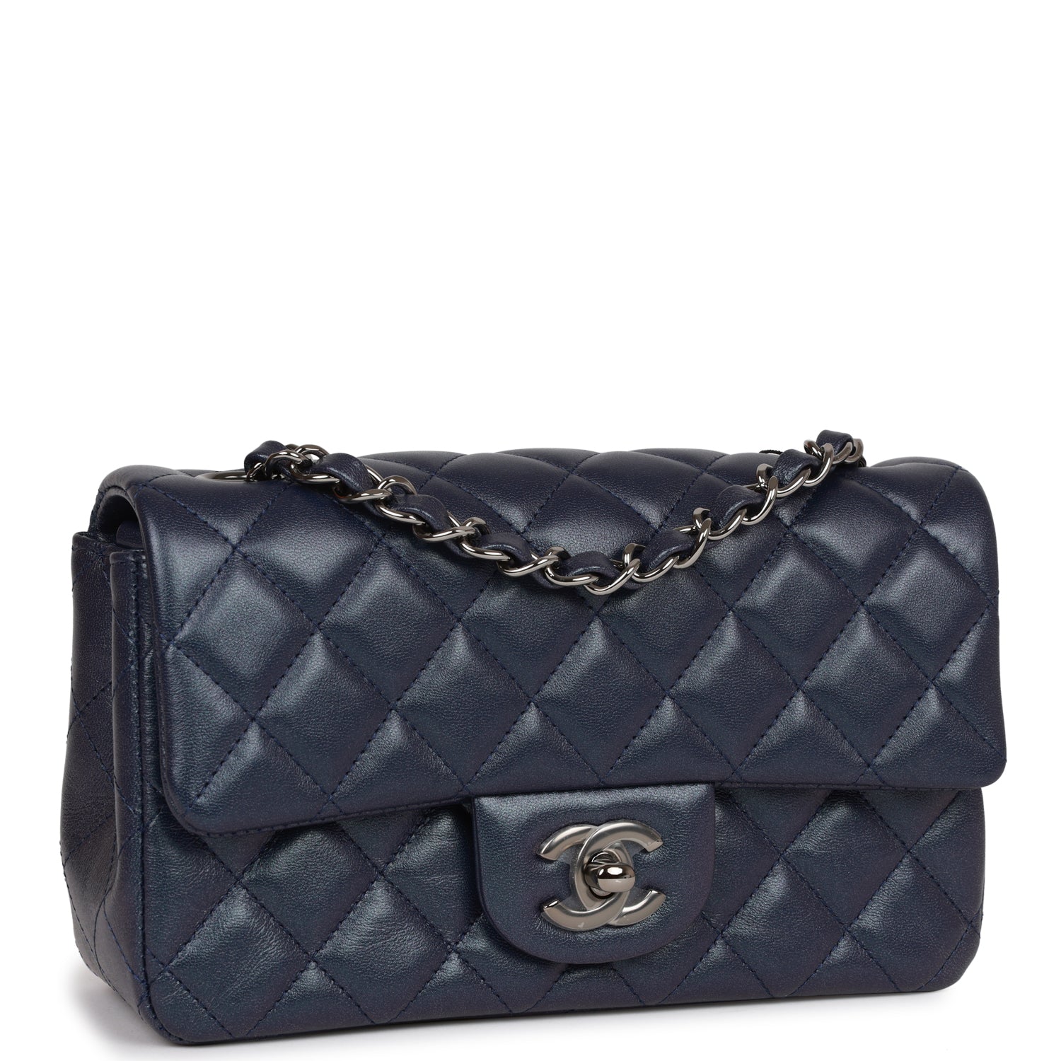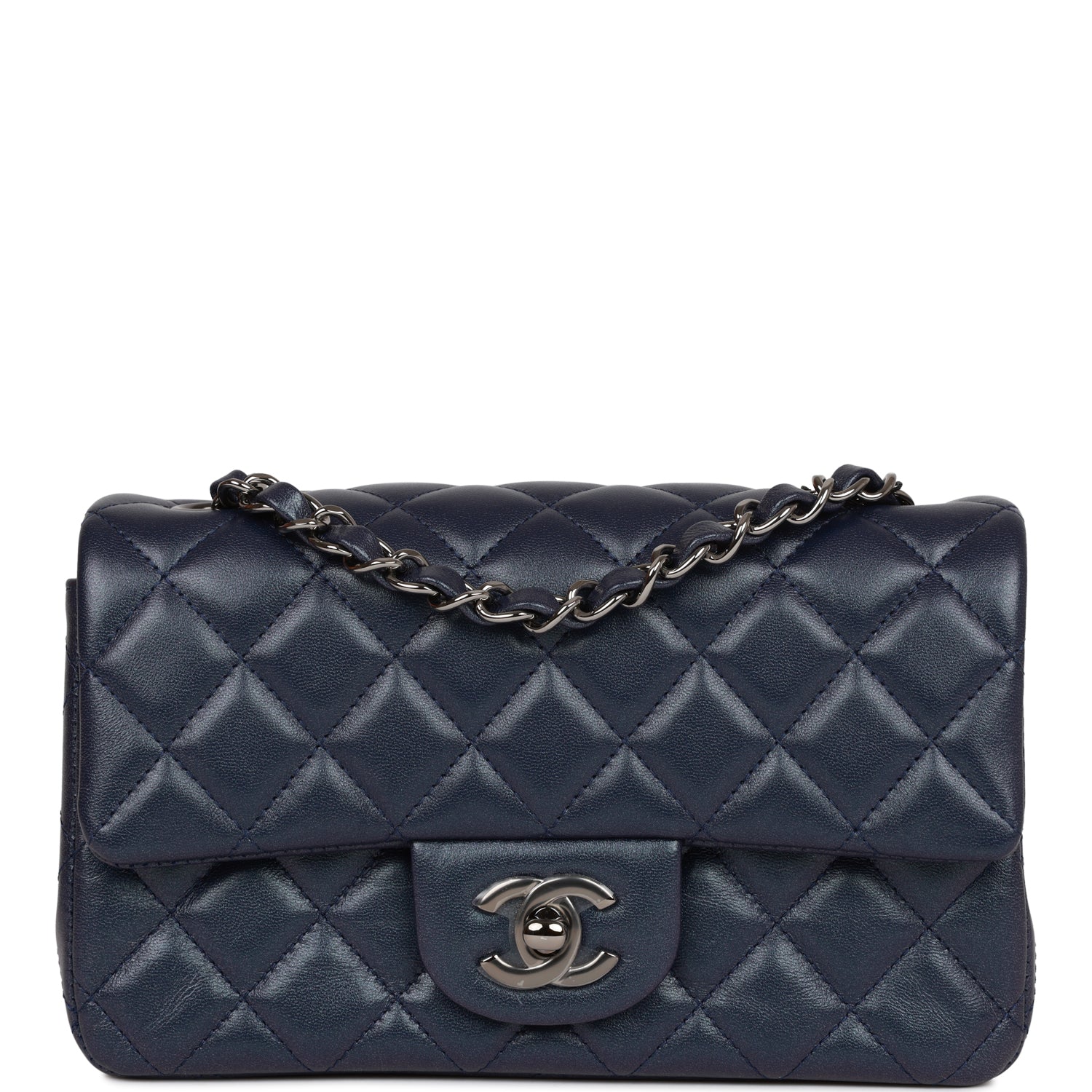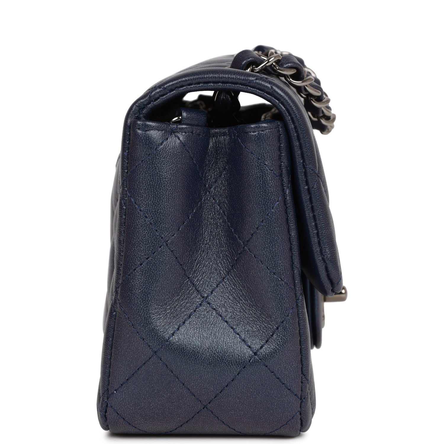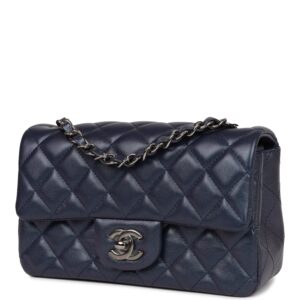 Home Chanel Chanel Classic Bags Chanel Mini Rectangular Flap Bag Navy Iridescent Lambskin Ruthenium Hardware