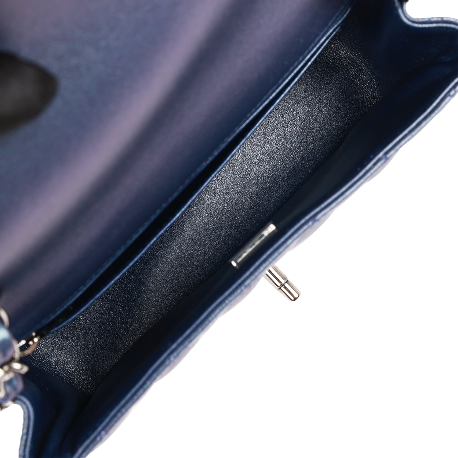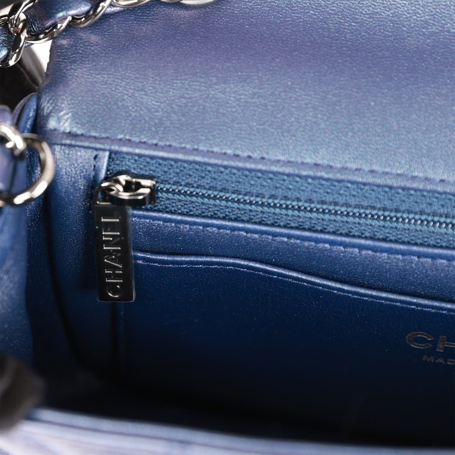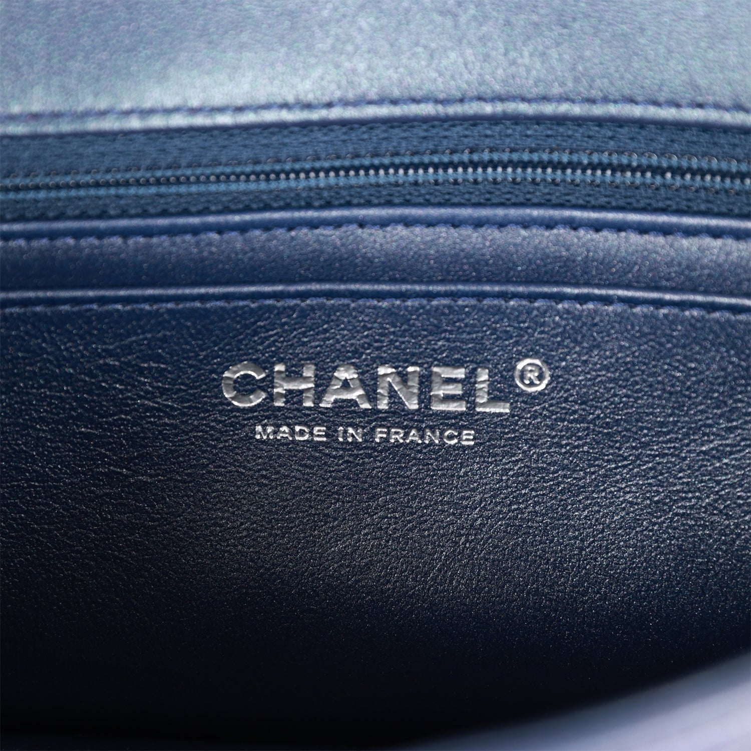 Chanel Mini Rectangular Flap Bag Navy Iridescent Lambskin Ruthenium Hardware