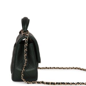 Chanel Mini Rectangular Flap with Top Handle Dark Green Lambskin Light Gold Hardware