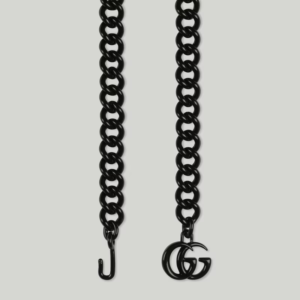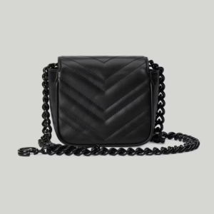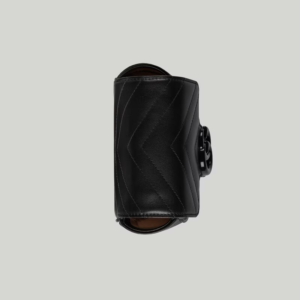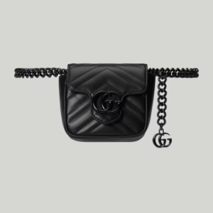 The Double G, an archival motif from the 1970s, denotes Gucci’s longstanding tenacity to reinvent and repurpose classic silhouettes. The tone-on-tone hardware rewrites a modern tale of the historic emblem, here it appears atop a GG Marmont belt bag crafted from black chevron matelassé leather.