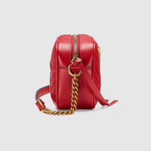- Hibiscus red matelassé chevron leather with GG on the back