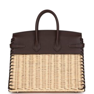 This rare Picnic Birkin Bag is in Rouge Sellier swift leather and Osier wicker with palladium plated hardware and has tonal stitching, front flap, two straps with toggle closure and double top handles.