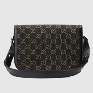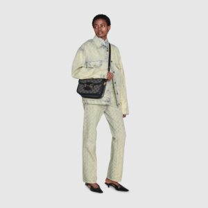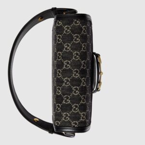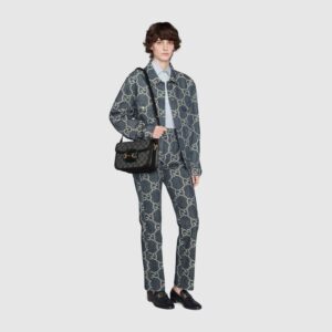 Gucci Horsebit 1955 shoulder bag in denim offers a fresh take on a classic piece. The new designs launched by the brand aim to break the shackles of the inherent rules of the fashion industry, conveying the idea that a piece should not only be popular for a season, but a design concept that will last over time. In keeping with this theme, this classic style pays homage to the brand’s long history with the recognizable horsebit hardware and the brand’s monogram.