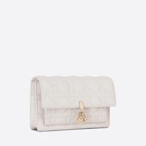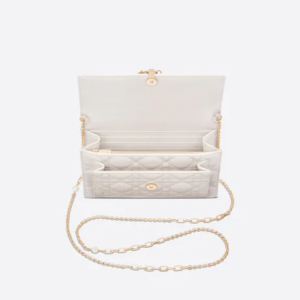 The Lady Dior pouch is a compact yet spacious companion. Crafted in latte lambskin with Cannage stitching, it is embellished with a ‘D.I.O.R.’ charm for a chic and timeless allure. Thanks to its numerous compartments, the functional accessory can accommodate all the daily essentials. Its jewel chain allows it to be worn over the shoulder or crossbody.