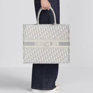 Introduced by Maria Grazia Chiuri, Creative Director of Christian Dior, the Dior Book Tote has become a staple of the Dior aesthetic. Designed to hold all the daily essentials, the style is fully embroidered with a hallmark gray Dior Oblique motif. Adorned with the ‘CHRISTIAN DIOR PARIS’ signature on the front, the large tote exemplifies the House’s signature savoir-faire and may be carried by hand or worn over the shoulder.