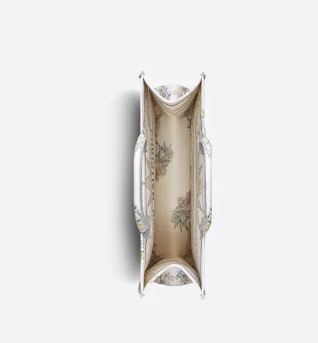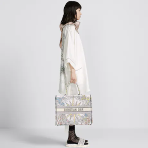 The Dior Book Tote is an original creation introduced by Dior’s Creative Director, Maria Grazia Chiuri, and has become a staple of the Dior aesthetic. Designed to hold all the daily essentials, it is fully embroidered with the white multicolor Rêve d’Infini motif by artist Pietro Ruffo, offering a dreamlike new take on Christian Dior’s favorite star symbol and essential House code. Adorned with a ‘CHRISTIAN DIOR PARIS’ signature on the front, the large tote exemplifies the House’s signature savoir-faire and may be carried by hand or worn over the shoulder.