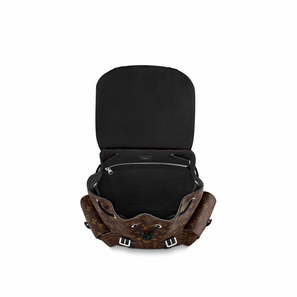 41 x 47 x 13 cm (Length x heightx width ) •Adjustable leather shoulder straps•Leather top handle•Cowhide leather trim•Silver brass finishings•Flap opening•Press stud and drawstring closure•Textile lining•2 side pockets•Internal iPad pocket•Internal zipped pocket•2 internal flat pockets•Monogram canvas body