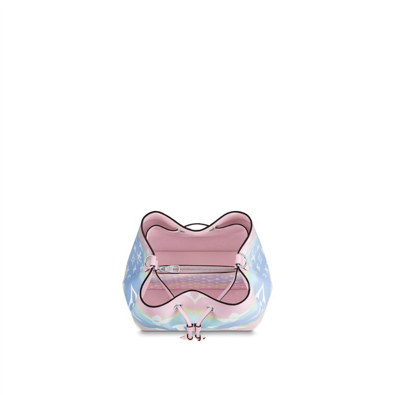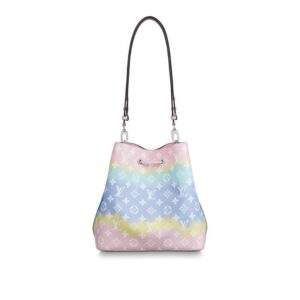The NéoNoé bucket bag comes in Tie-Dye Monogram canvas for the LV Escale Collection. Present across Louis Vuitton handbags, shoes and ready-to-wear this season, this unexpected motif is inspired by the Japanese Shibori technique of knotting fabric before dyeing it. A lightweight bag, with a removable strap for a shoulder or cross-body carry.