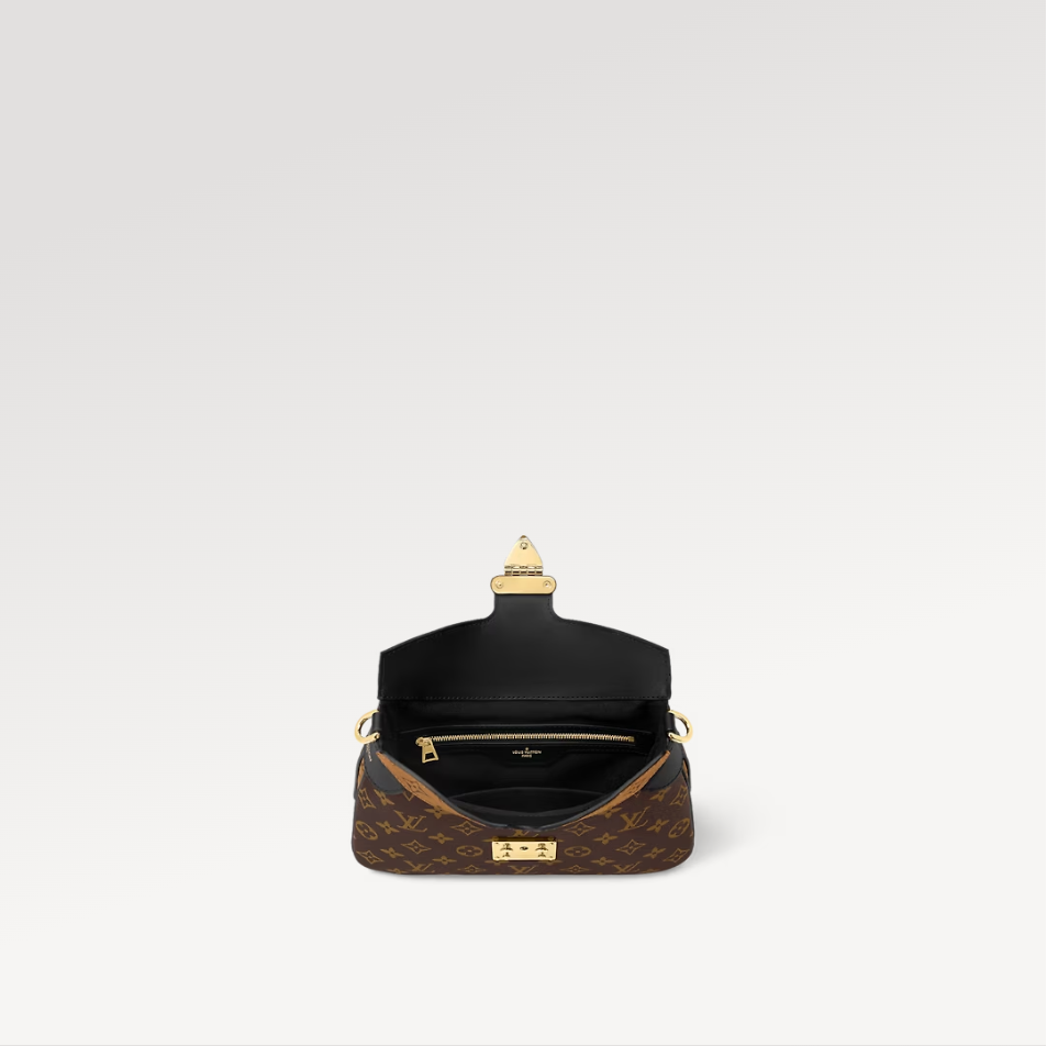 Inspired by the Maison’s archives, the casual yet sophisticated LV Twinny is the Monogram handbag of the season. Crafted from a mix of Monogram and Monogram Reverse canvas with black leather trim, it is detailed with an iconic S-lock and a braided chain handle. The bag lends itself to all manner of stylings: from elbow and shoulder to short or long cross-body wear.