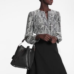 The Muria bucket bag is made from Mahina calf, a perforated leather with a discreet Monogram motif. Supple and sophisticated, it is a pleasure to carry, either by the braided top handle or the long leather strap, which adjusts for short- and long-shoulder or hands-free cross-body wear. Crafted signature details include a name tag and keybell in smooth calfskin.