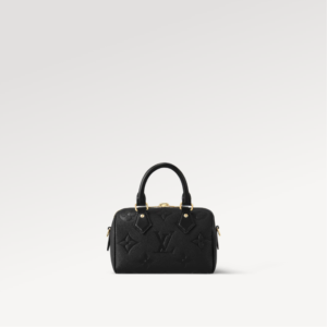 The Speedy Bandoulière 20 is an on-trend compact handbag, just the right size to carry daily essentials. It’s made from smooth grained Monogram Empreinte leather, embossed with an Oversized Monogram pattern. The hardware and padlock are a golden color. It has a delicate chain strap – removeable and adjustable – in addition to two Toron handles.