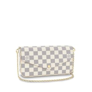With its two removable interior pockets, the elegant Pochette Felicie in Damier Azur canvas is the stylish solution to carry and organise all your daily essentials. Much more than a wallet, it can be transformed into a glamourous shoulder bag or clutch thanks to its removable golden chain.