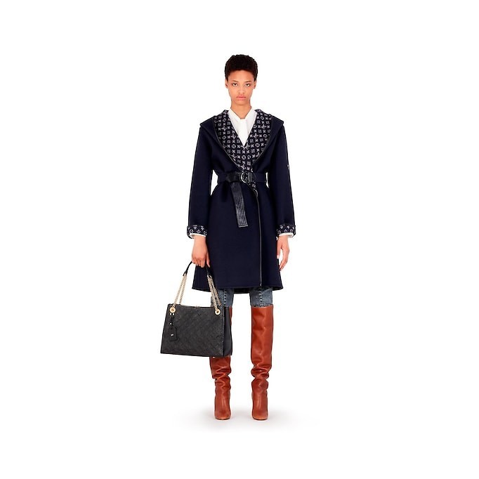 •Chain handles with 2 smooth calf-leather shoulder pads
