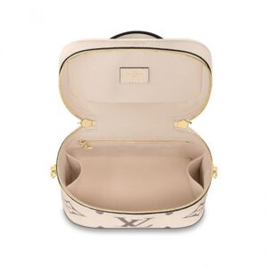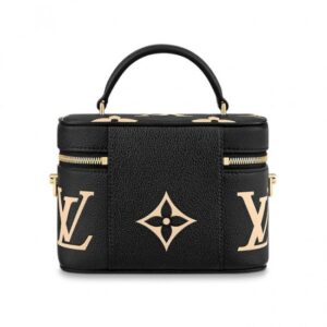 Inspired by the Monogram Nice Vanity, the Vanity PM handbag in Monogram Empreinte leather is a fashionably small bag with a distinctive shape. It is made from grained leather, embossed with the Giant Monogram motif. Its tassel zip pulls, ladylike top handle, and removable strap make it versatile and strikingly stylish.