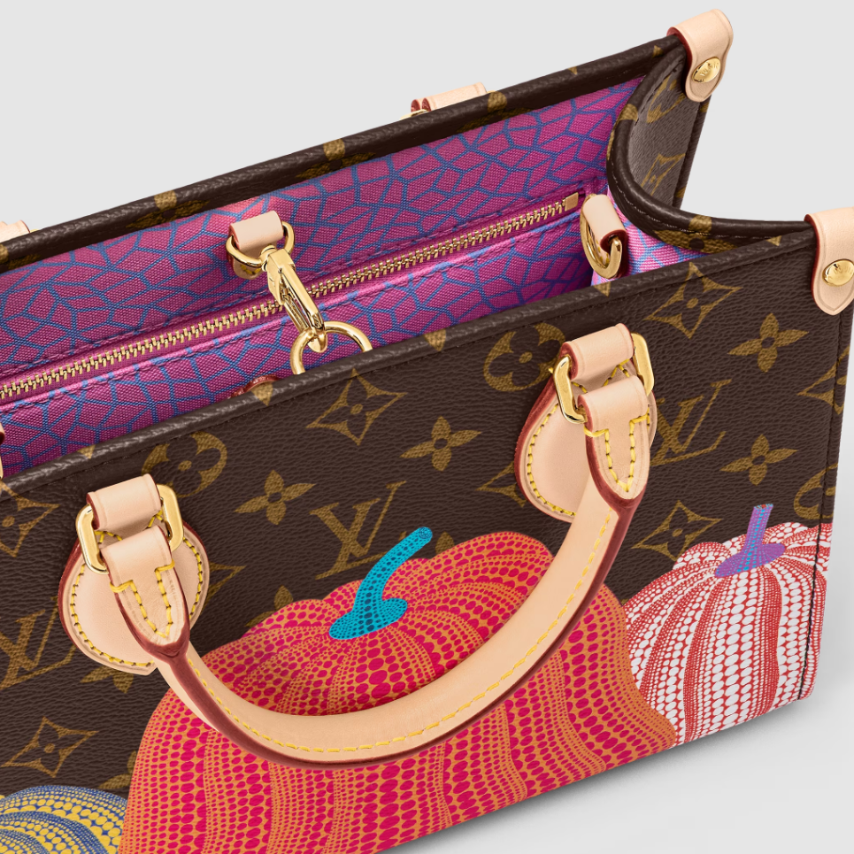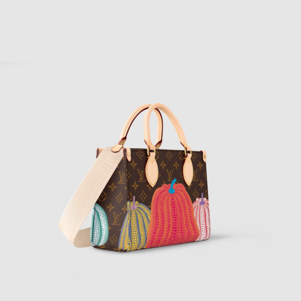 For the Louis Vuitton x Yayoi Kusama collection, the LVxYK OnTheGo PM captures the spirit of the Japanese artist’s work with a unique and creative print. Kusama has made pumpkins a visual signature, an emblem of her irrepressible energy and enthusiasm. For this user-friendly bag, Monogram canvas is embellished with a series of pumpkins in warm colors. And it comes with a separate pumpkin-print coin purse on the strap.