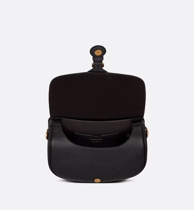 The Dior Bobby bag is a hobo style showcasing sophisticated lines and harmonious proportions. The black silhouette is crafted from very supple natural grained calfskin with a suede calfskin interior, and is enhanced by antique gold-finish metal hardware. Its removable and adjustable shoulder strap has a military-inspired buckle, and allows the medium bag to be carried by hand, worn over the shoulder or crossbody.