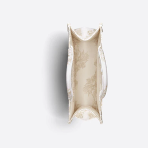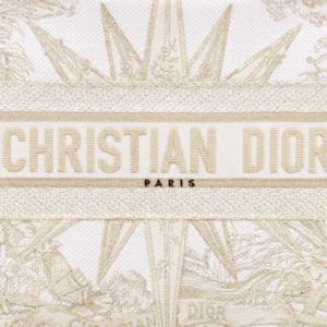 The Dior Book Tote is an original creation introduced by Dior’s Creative Director, Maria Grazia Chiuri, and has become a staple of the Dior aesthetic. Designed to hold all the daily essentials, it is fully embroidered with the Rêve d’Infini motif by artist Pietro Ruffo embellished with gold-tone metallic thread, offering a dreamlike new take on Christian Dior’s favorite star symbol and essential House code. Adorned with a ‘CHRISTIAN DIOR PARIS’ signature on the front, the medium tote exemplifies the House’s signature savoir-faire and may be carried by hand or worn over the shoulder.