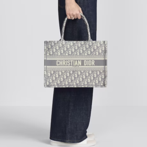 Introduced by Maria Grazia Chiuri, Creative Director of Christian Dior, the Dior Book Tote has become a staple of the Dior aesthetic. Designed to hold all the daily essentials, the style is fully embroidered with a gray Dior Oblique motif. Adorned with the ‘CHRISTIAN DIOR PARIS’ signature on the front, the medium tote exemplifies the House’s signature savoir-faire and may be carried by hand or worn over the shoulder.