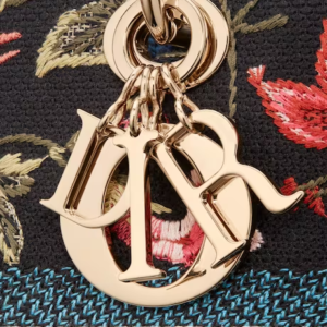 The Lady D-Lite bag combines classic elegance with House modernity. The style is fully embroidered with the bucolic black multicolor Dior Birds motif, inspired by the Japonisme art movement and featuring birds surrounded by floral decor. A Christian Dior Paris signature adorns the front, while D.I.O.R. charms in rose gold-finish metal further enhance and highlight the silhouette. Featuring a wide embroidered shoulder strap, the medium Lady D-Lite bag can be carried by hand, worn over the shoulder or crossbody.