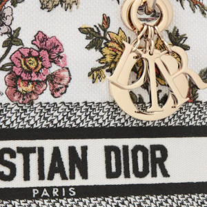 The Lady D-Lite bag combines classic elegance with House modernity. Fully embroidered with the multicolor Dior Jardin Botanique motif, it features a romantic floral pattern inspired by Mr. Dior’s beloved Granville gardens. The front features a ‘CHRISTIAN DIOR PARIS’ signature while the ‘D.I.O.R.’ charms in pale gold-finish metal embellish and illuminate the silhouette. Equipped with a wide, reversible and removable embroidered shoulder strap, the medium Lady D-Lite bag can be carried by hand or worn crossbody.
