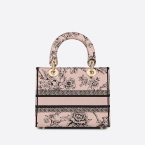 The Lady D-Lite bag combines classic elegance with House modernity. Fully embroidered with the powder pink Dior Jardin Botanique motif, it features a romantic floral pattern inspired by Granville gardens so dear to Mr. Dior. The front features a ‘CHRISTIAN DIOR PARIS’ signature while the ‘D.I.O.R.’ charms in pale gold-finish metal embellish and illuminate the silhouette. Equipped with a wide, reversible and removable embroidered shoulder strap, the medium Lady D-Lite bag can be carried by hand or worn crossbody.