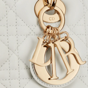 The Lady Dior bag epitomizes the House’s vision of elegance and beauty. Sleek and refined, the timeless style is crafted in latte lambskin with Cannage stitching, creating the instantly recognizable quilted texture. Pale gold-finish metal ‘D.I.O.R.’ charms offer an elegant allure. Featuring a thin, removable leather shoulder strap, the medium style may be carried by hand or worn crossbody.