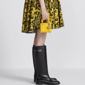 The Lady Dior bag embodies the House’s vision of elegance and beauty. Crafted in yellow lambskin with signature Cannage topstitching, its iconic silhouette is embellished with a ‘D.I.O.R.’ charm. The micro Lady Dior bag can accommodate all the daily essentials and features an adjustable and removable shoulder strap, allowing it to be carried by hand, worn over the shoulder or crossbody.