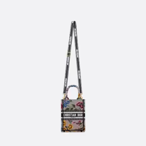 MINI DIOR BOOK TOTE PHONE BAG Pink Multicolor Dior Petites Fleurs Embroidery (13 x 18 x 5 cm)