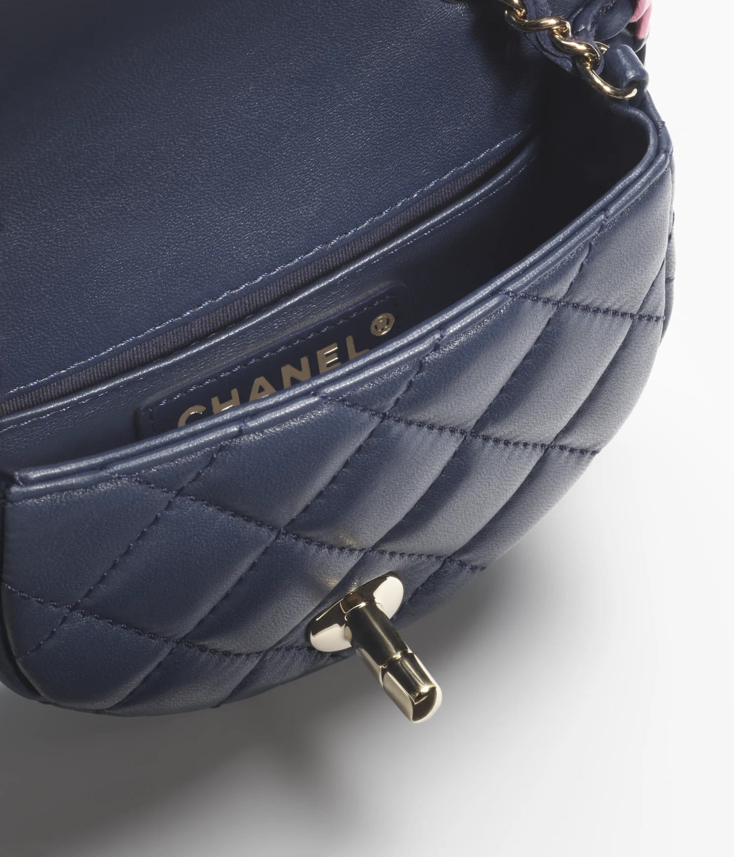 Home Best Seller MINI MESSENGER BAG Lambskin & Gold Metal Navy Blue, Light Blue & Pink