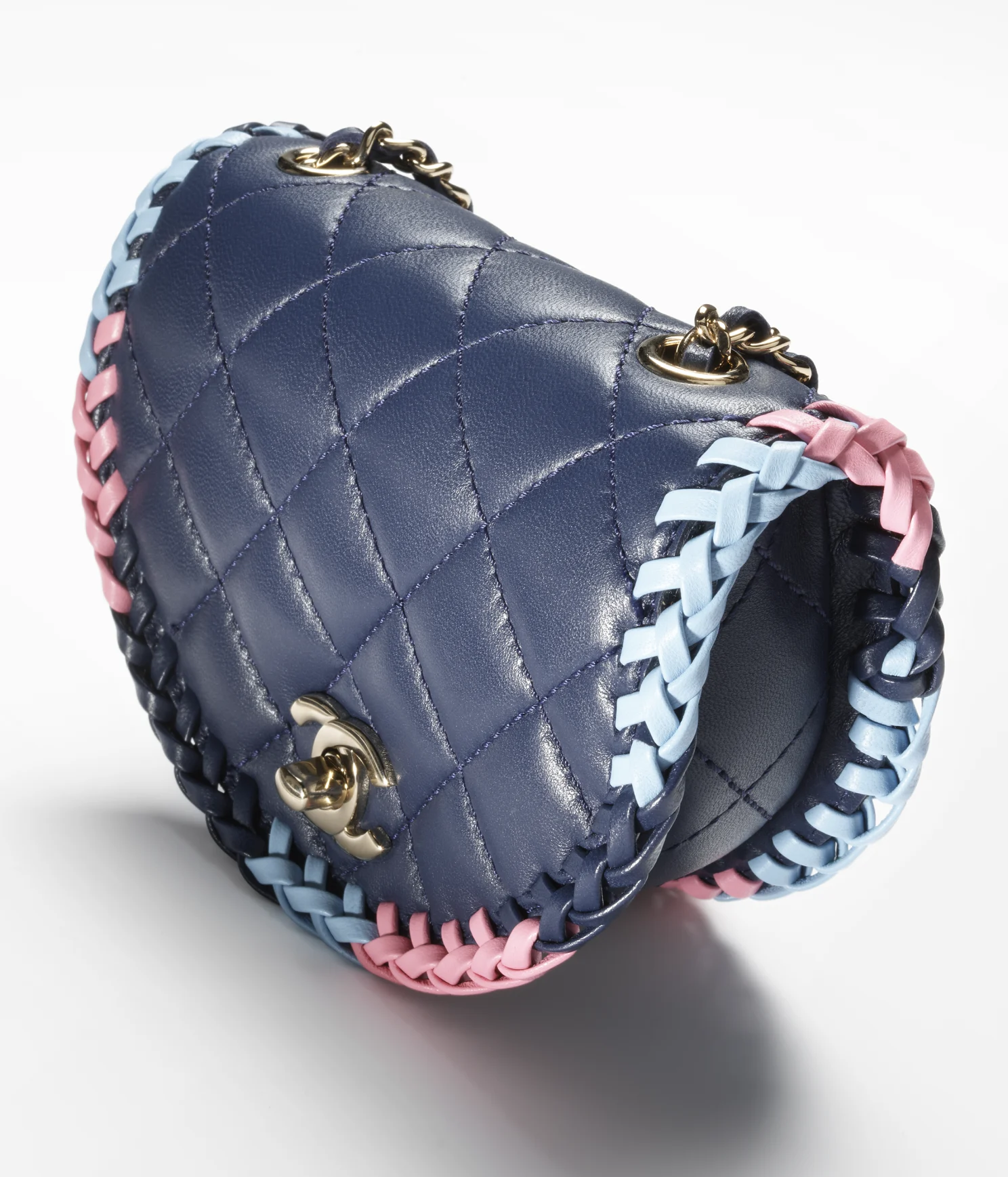 MINI MESSENGER BAG Lambskin & Gold Metal Navy Blue, Light Blue & Pink