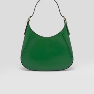 A bold and refined silhouette characterizes this leather shoulder bag with fine details. The geometric construction contrasts with soft lines to create a modern and elegant yet sporty bag, an expression of the hybrid concept and part of the Prada’s aesthetic code.