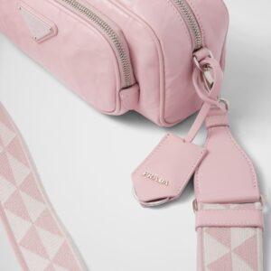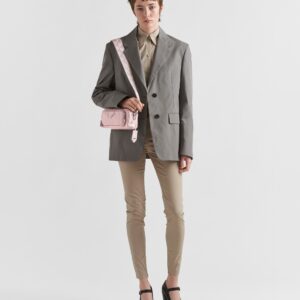 This bag with compact allure is made of nappa leather with a natural, glossy finish. The hand-made wrinkled effect contrasts with the constructed and rigid concept, reinterpreting an everyday object to be worn without constraints. Presented in the Spring Summer 2023 show, the style is accented with a finely embroidered shoulder strap with a sporty mood.