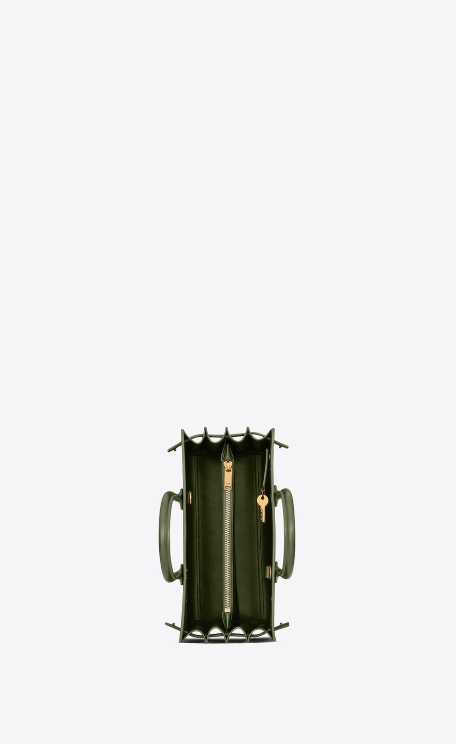 - Interior: two main compartments separated by one central zipped compartment, padlock keys attached to the inside with a snap button